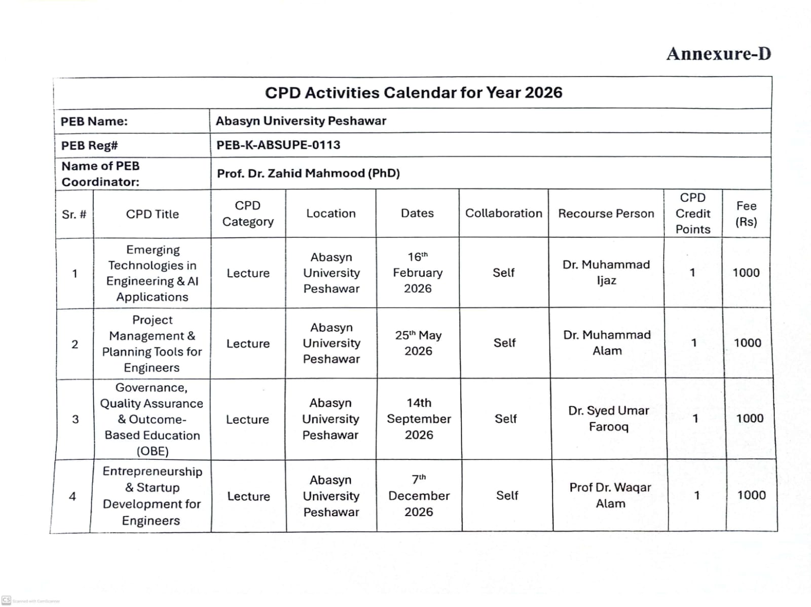 | Design Management and Development Consultancy, Peshawar Reg no: PEB-K-DMDPSH-0124 Coordinator Name: Engr Fawad Khattak Engr Imtiaz Khan | |